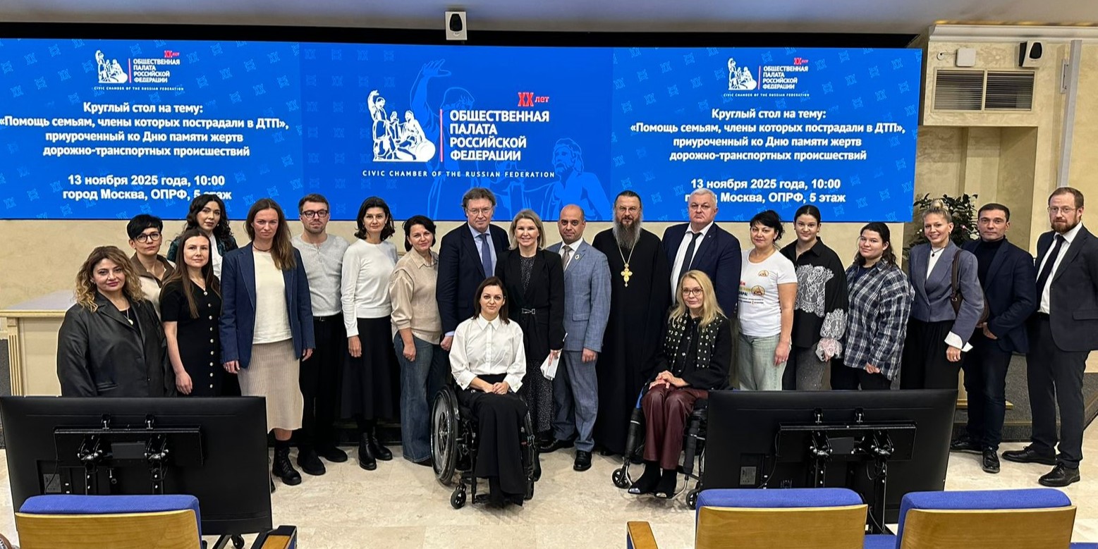 13 ноября 2025 года Комиссия Общественной палаты Российской Федерации по демографии, защите семьи, детей и традиционных семейных ценностей провела круглый стол на тему «Помощь семьям, члены которых пострадали в ДТП», приуроченный ко Дню памяти жертв дорожно-транспортных происшествий (далее – Круглый стол).