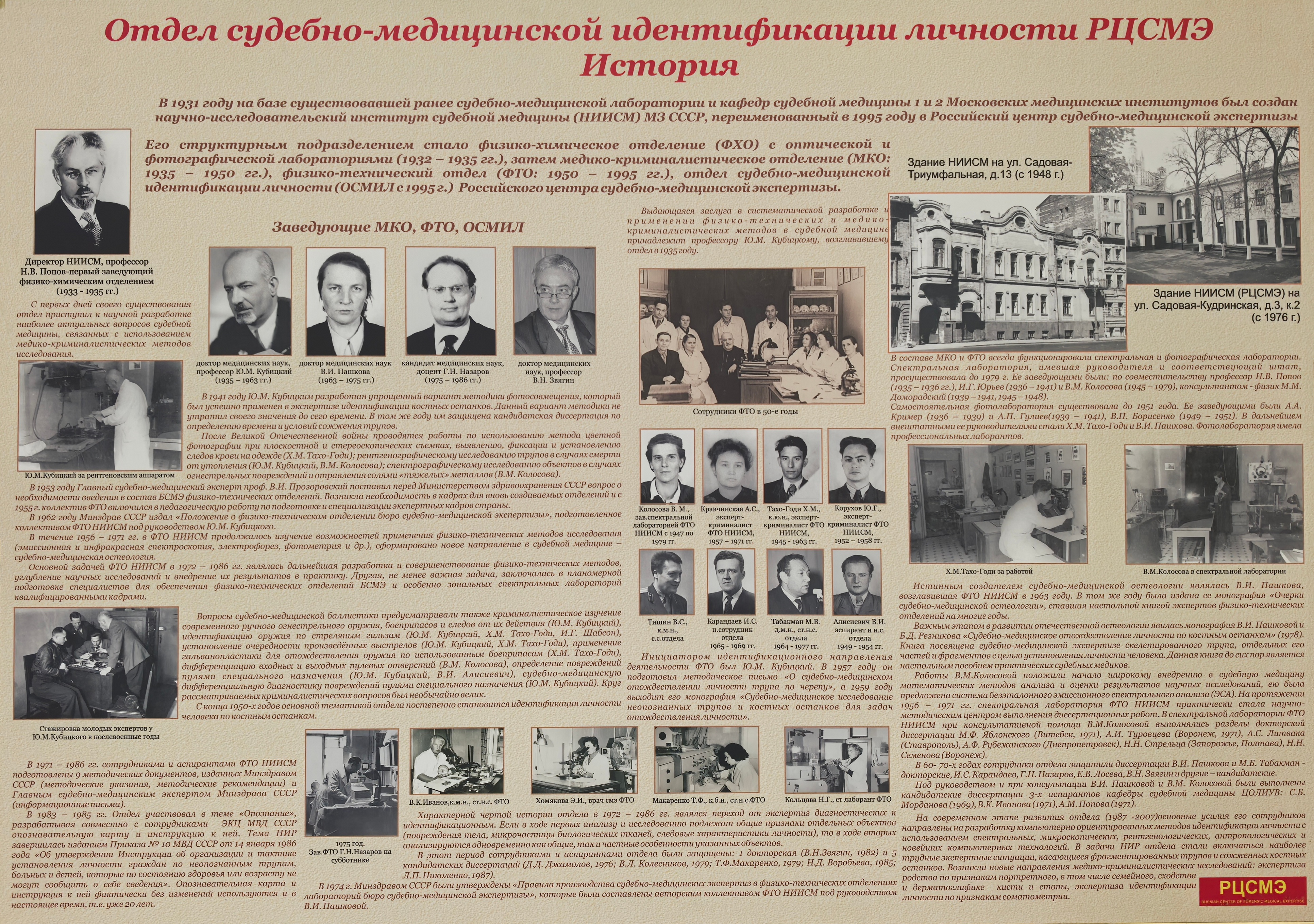 В 1953 году Главный судебно-медицинский эксперт, профессор В.М. Прозоровский поставил перед Министерством здравоохранения СССР вопрос о необходимости введения в состав бюро судебно-медицинской экспертизы физико-технических отделений. В 1962 году Минздравом СССР издано «Положение о физико-техническом отделении бюро судебно-медицинской экспертизы», подготовленное коллективом физико-технического отделения Научно-исследовательского института судебной медицины Минздрава СССР под руководством профессора Ю.М. Кубицкого.