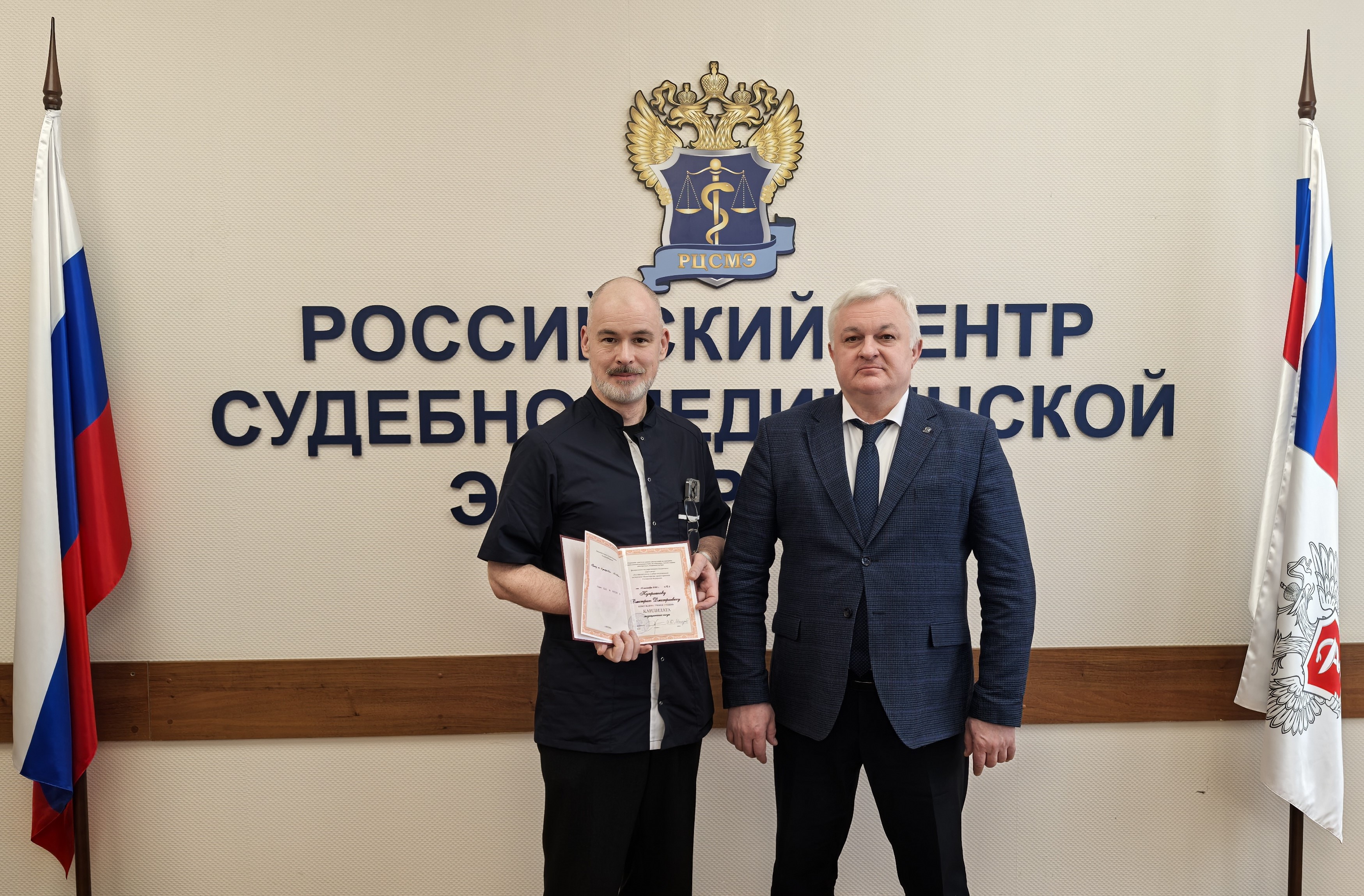 На основании приказа Министерства науки и высшего образования Российской Федерации от 12.12.2025 № 1192/нк «О выдаче дипломов кандидата наук», 26 января 2026 года председатель диссертационного совета, директор ФГБУ «РЦСМЭ» Минздрава России, д.м.н., профессор И.Ю. Макаров торжественно вручил Д.Д. Куприянову диплом кандидата медицинских наук.