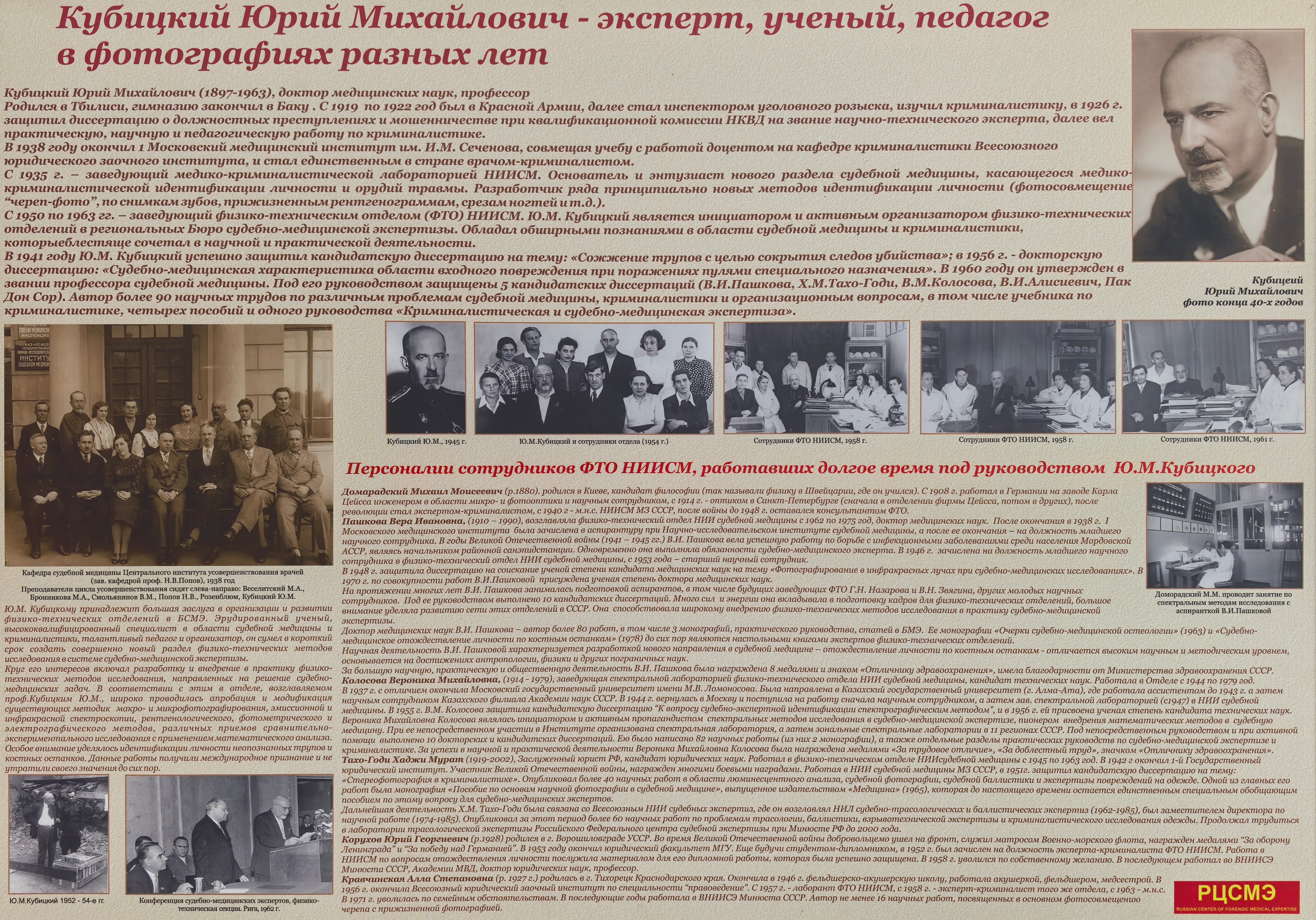 В 1953 году Главный судебно-медицинский эксперт, профессор В.М. Прозоровский поставил перед Министерством здравоохранения СССР вопрос о необходимости введения в состав бюро судебно-медицинской экспертизы физико-технических отделений. В 1962 году Минздравом СССР издано «Положение о физико-техническом отделении бюро судебно-медицинской экспертизы», подготовленное коллективом физико-технического отделения Научно-исследовательского института судебной медицины Минздрава СССР под руководством профессора Ю.М. Кубицкого.